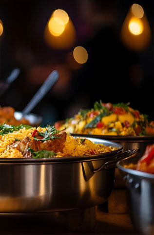 Elevate your gatherings with our exquisite outdoor catering. We bring the culinary magic of Biryaani Bazaar to your event, creating an unforgettable experience for you and your guests. Let the festivities be as grand as your imagination!